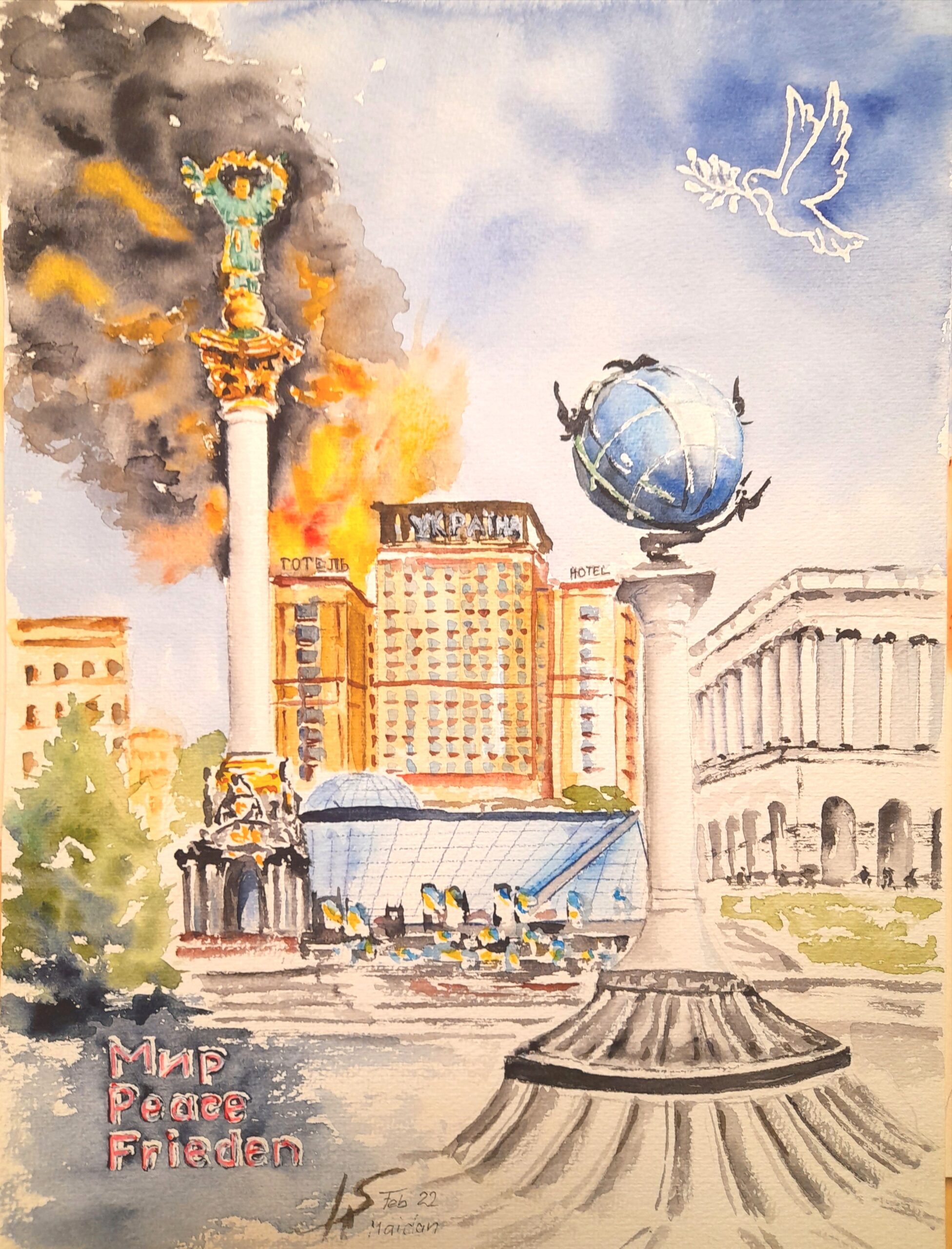 Das Aquarell „Majdan“ steht als Synonym für Frieden, Freiheit und Unabhängigkeit.