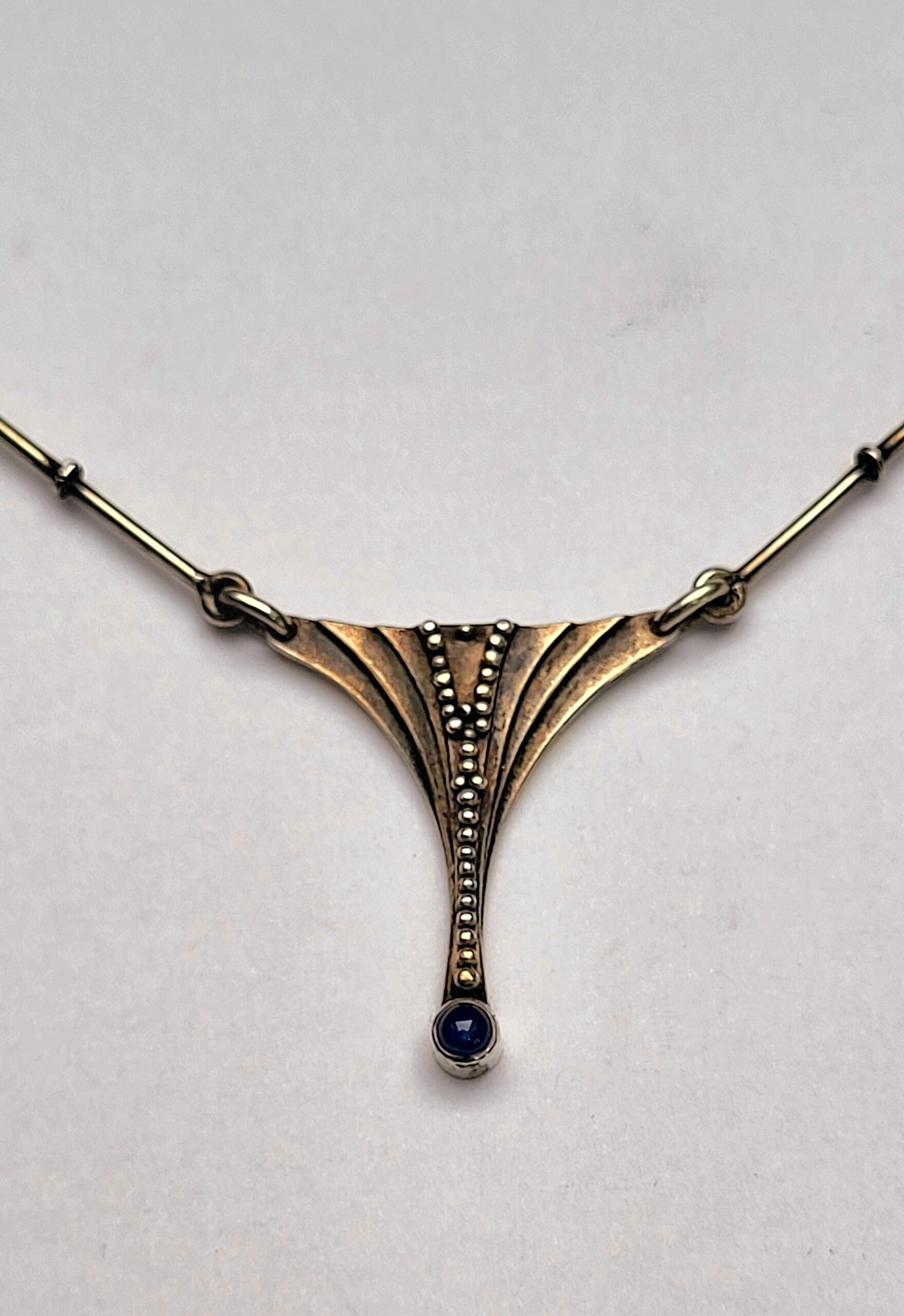 kleiner blauer Saphir eingefasst und die Kettenglieder sind auch von Hand